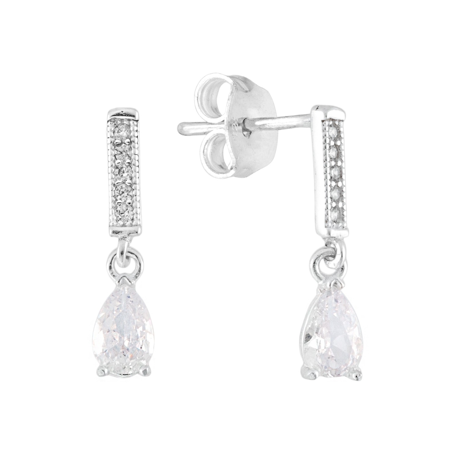 Brinco hastes com pedras Incolores em Zircônias e duas Gotas Penduradas no Tamanho 4x6 na Pedra Zircônia Incolor . (Tarraxas em Prata ) Peças timbrada PL925 para Garantir a autenticidade da Joia produzida pela Landry Joias.