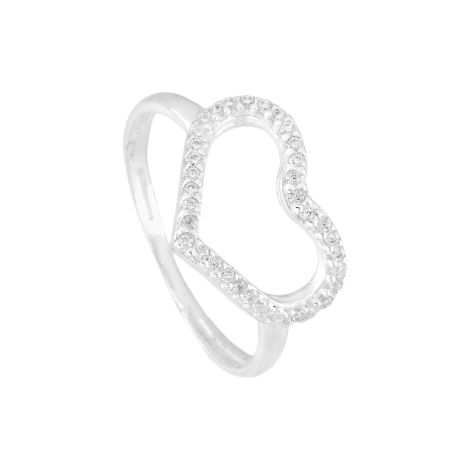 Anel Formato Coração com Pedras Cravejadas em Zircônias Incolor.