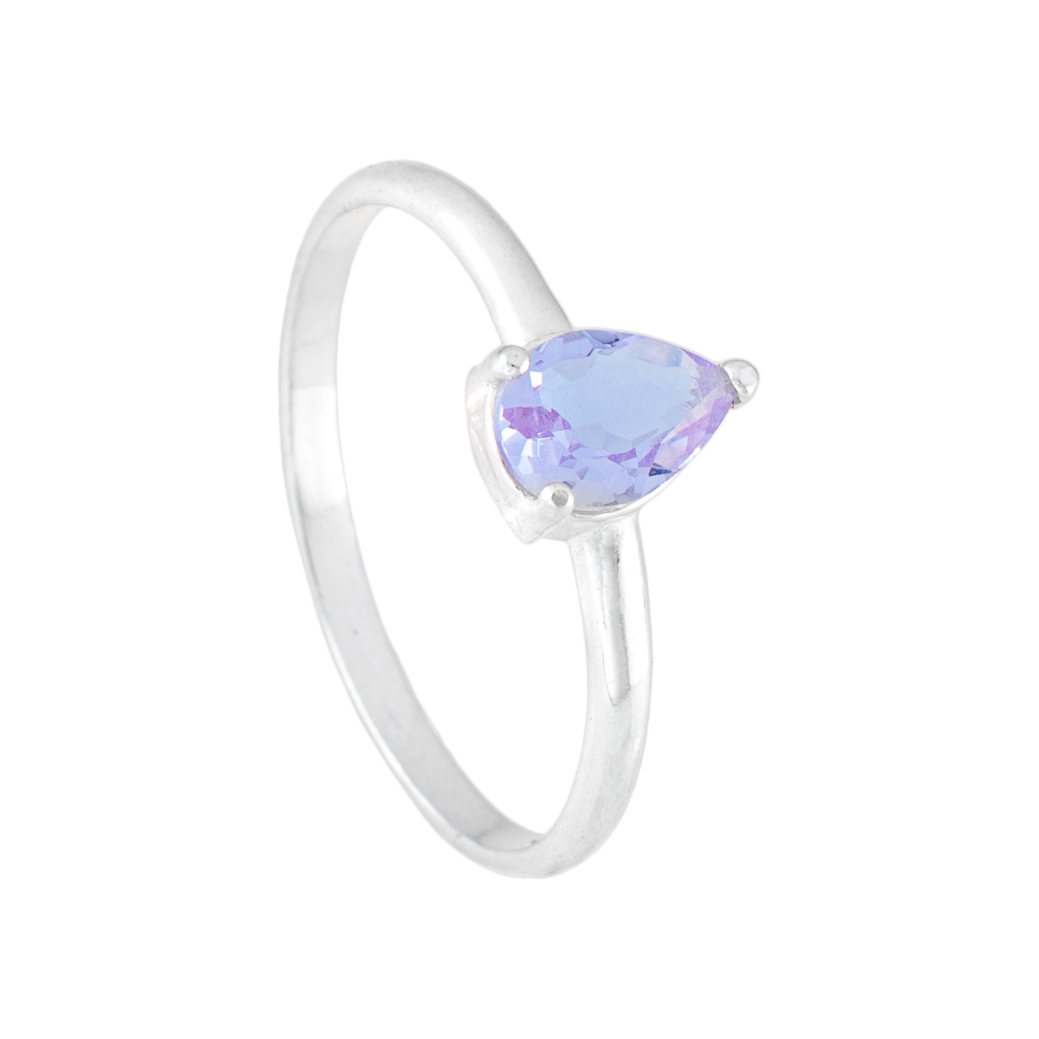 Anel Solitario Gota 5x7 na Pedra Cristal Cor Alexandrita, aro polido em prata 925.