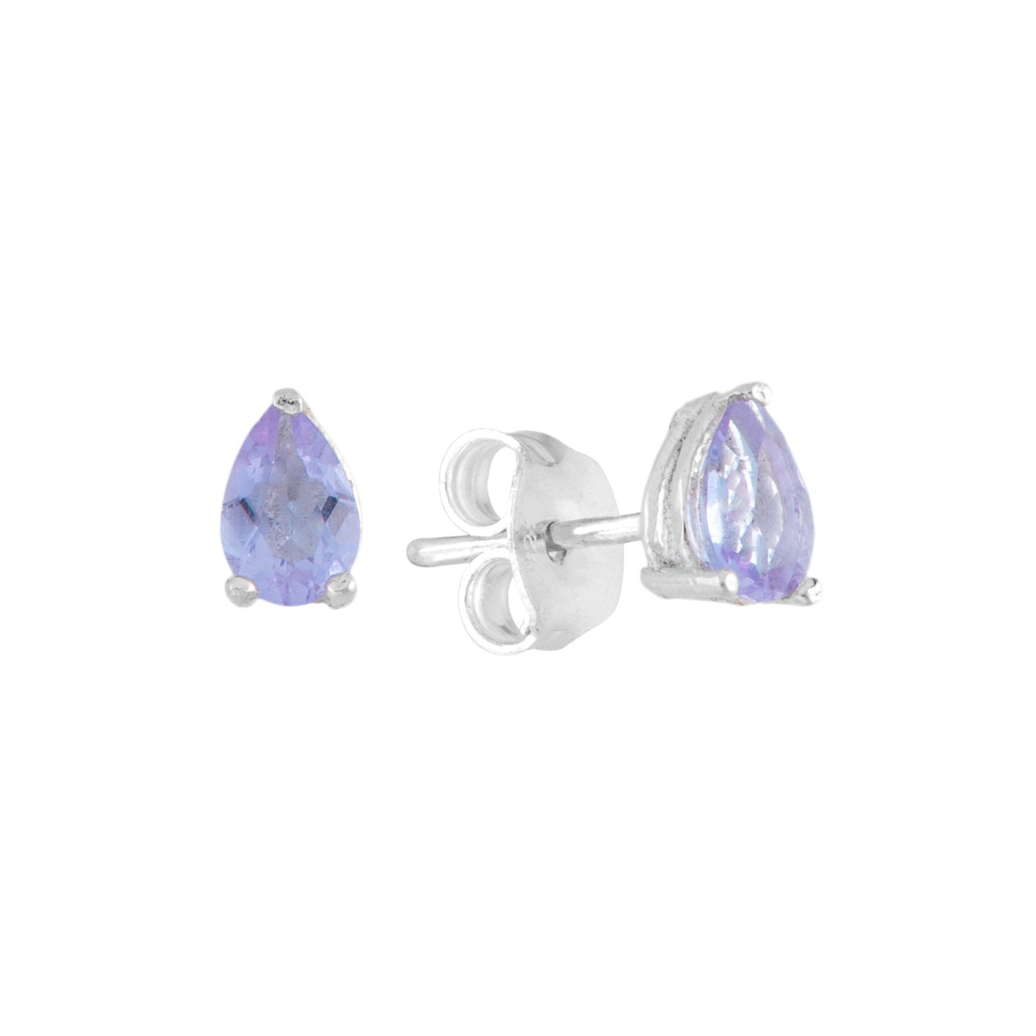 Brinco Gota Fixo no Tamanho 4x6 na Pedra Cristal Cor Lilás, ideal para segundo furo ou infantil.