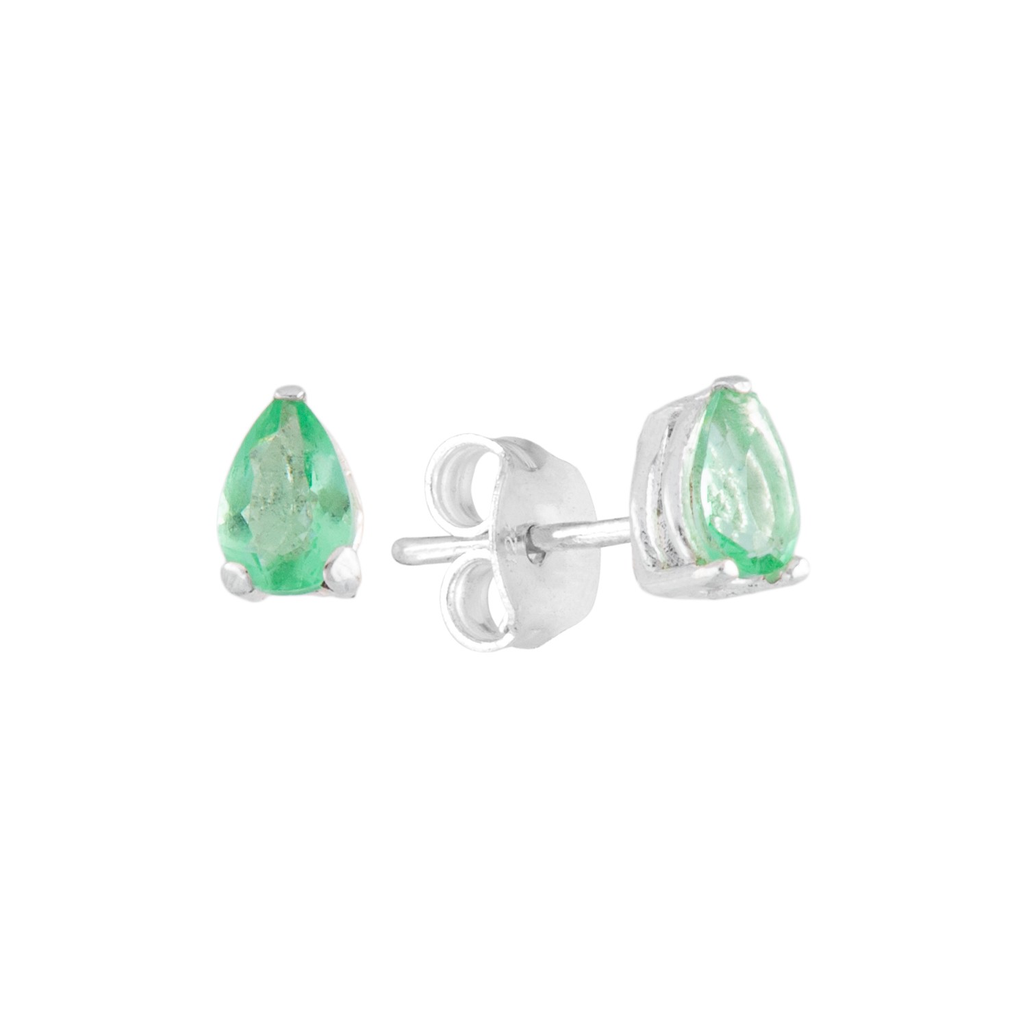 Brinco Gota Fixo no Tamanho 4x6 na Pedra Cristal Cor Turmalina Verde, ideal para segundo furo ou infantil.