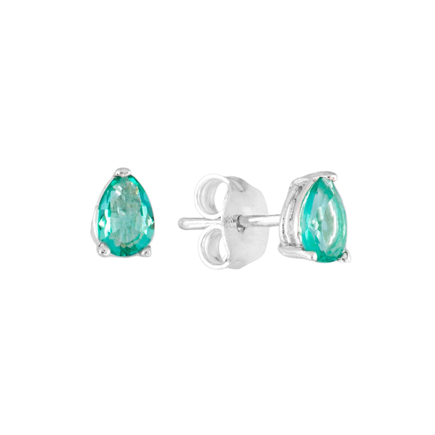 Brinco Gota Fixo no Tamanho 4x6 na Pedra Cristal Cor Turmalina Paraíba, ideal para segundo furo ou infantil.