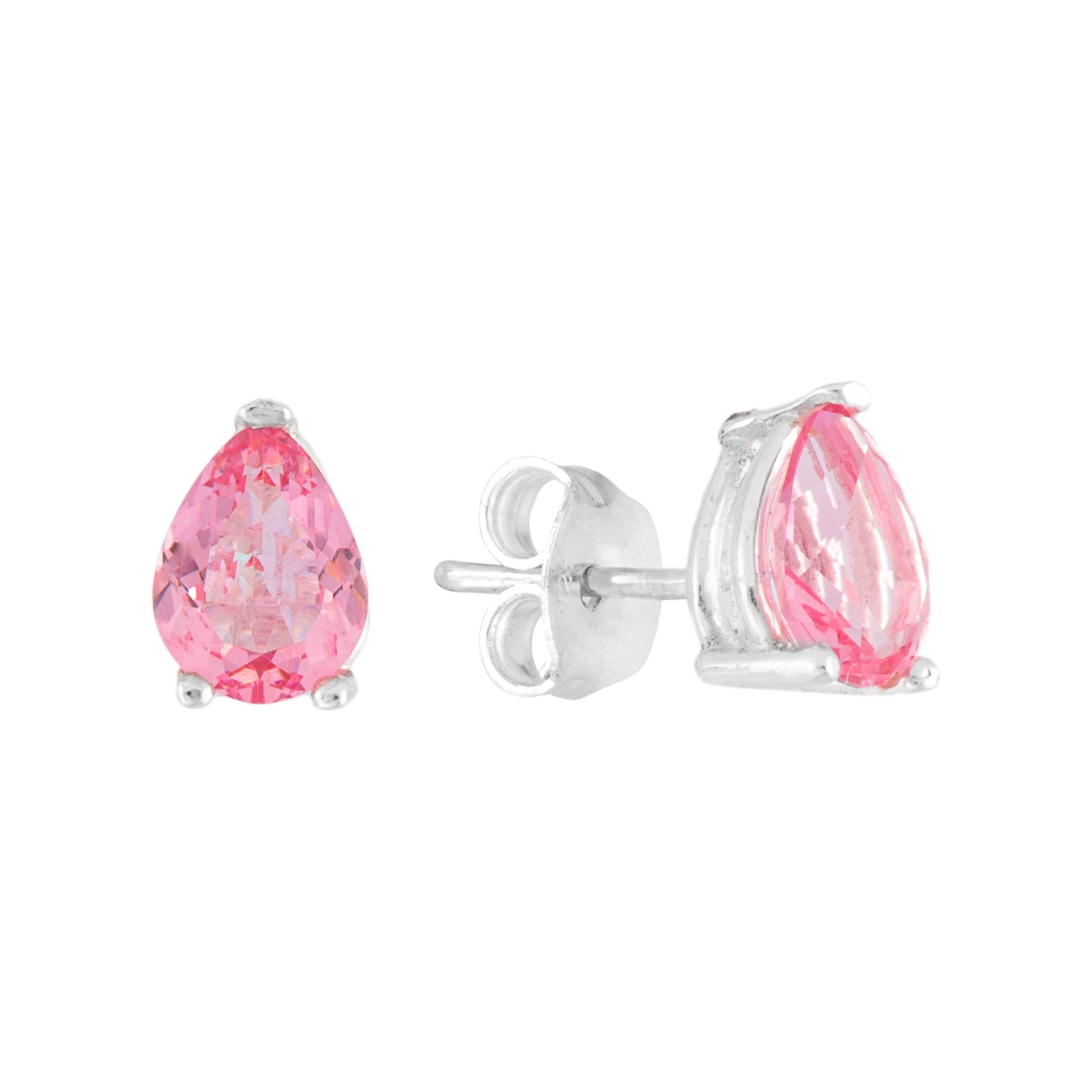 Brinco em formato de Gota com galeria e pino na pedra Cristalcor Safira Rosa, ideal para primeiro furo.